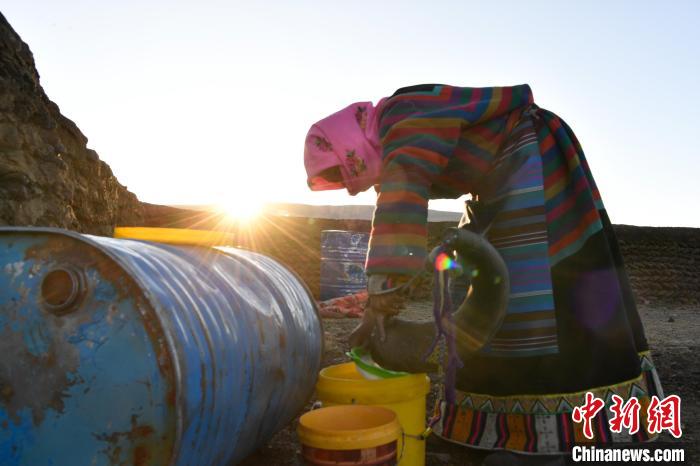 12月12日,西藏自治區(qū)那曲市安多縣帕那鎮(zhèn)牧民土巴卓瑪正在清洗擠奶桶。中新社記者 貢嘎來(lái)松 攝