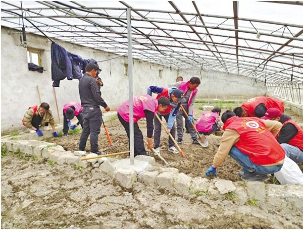 圖為薩爾鄉(xiāng)開展“志愿紅”播種“愛(ài)心菜”活動(dòng)。