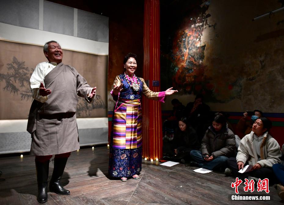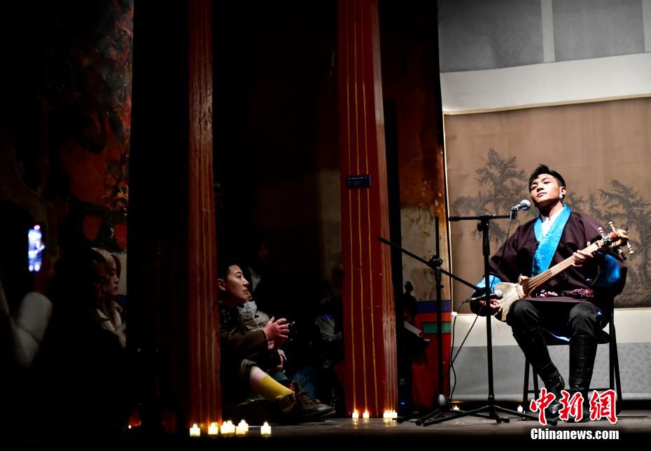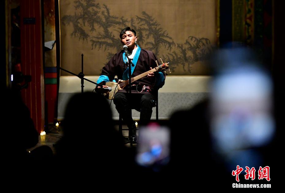12月23日晚,西藏拉薩吉本崗藝術(shù)中心舉行吉光之夜活動。朗瑪堆諧、扎木念彈唱、熱巴舞等非遺展演,吸引眾多民眾共同領略西藏非物質(zhì)文化遺產(chǎn)的無窮魅力。圖為扎木念彈唱《阿里札達民歌隆巴》。中新社記者 李林 攝