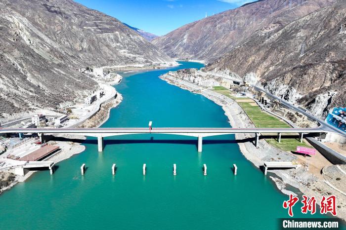 今年是川藏公路、青藏公路(簡稱“兩路”)通車70周年。70年來,“兩路”是西藏的經(jīng)濟命脈,更是西藏與其他省區(qū)交往交流交融之路。圖為12月21日,川藏交界的金沙江大橋。(無人機照片) 薛蒂 攝