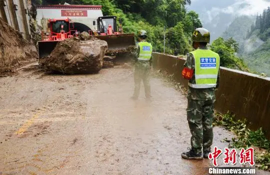 圖為武警官兵處理路基垮塌險(xiǎn)情現(xiàn)場。受訪單位提供