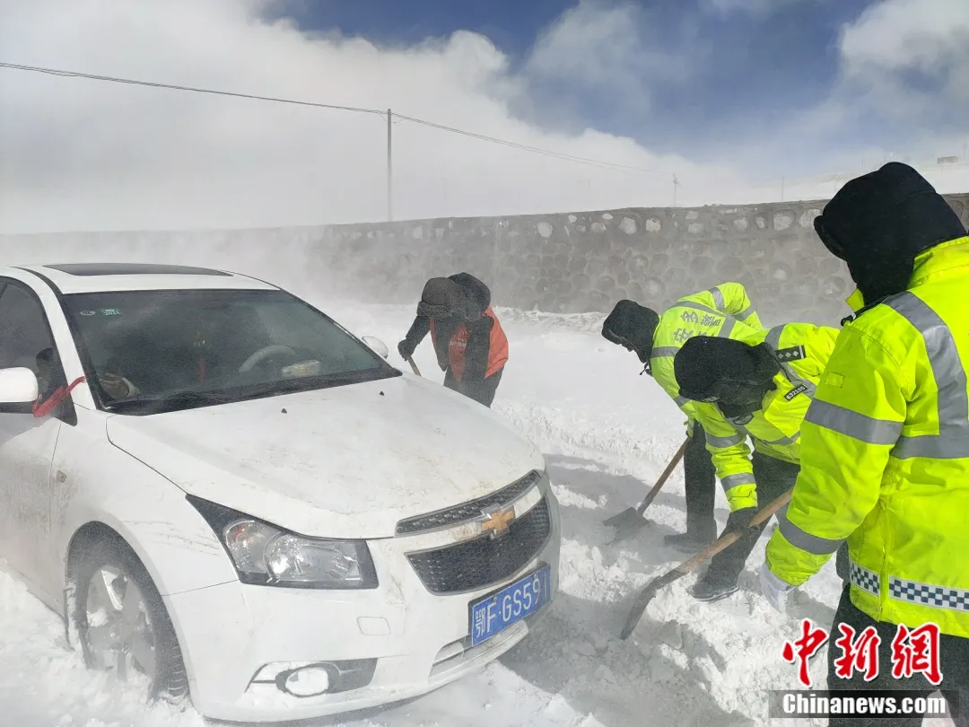 中新社記者們跟隨安多縣公安局交警大隊(duì)秩序中隊(duì)中隊(duì)長達(dá)娃云旦的執(zhí)勤小隊(duì),借著采訪算是體驗(yàn)了一把“生命線”上的特殊執(zhí)勤。