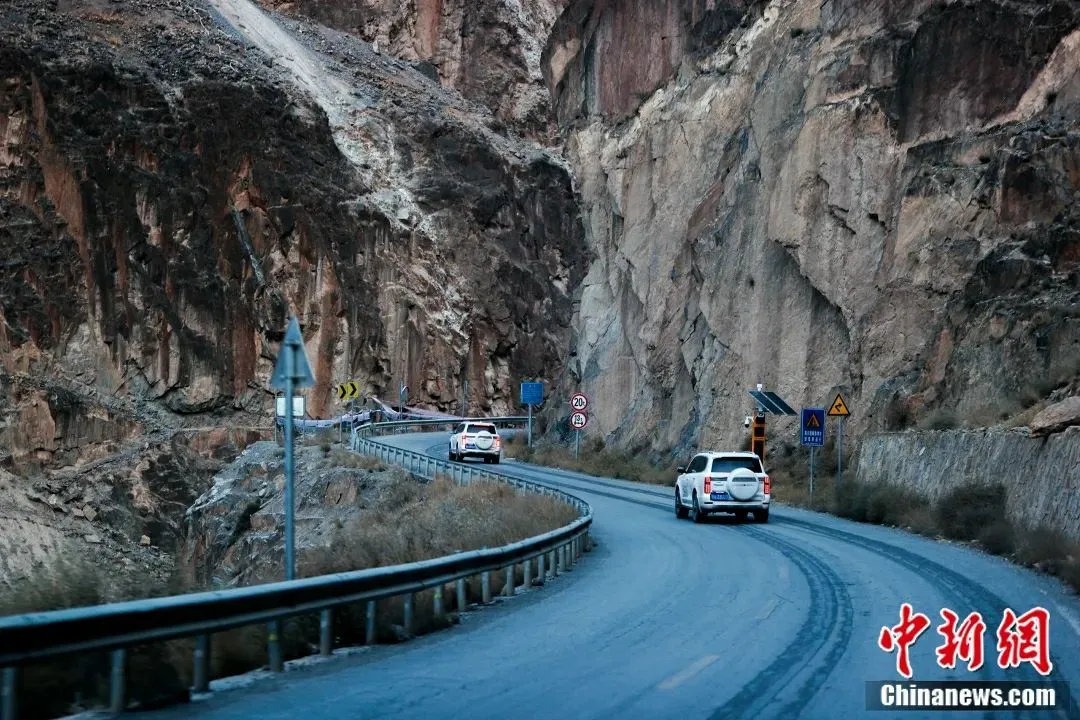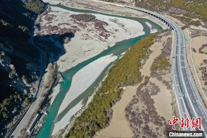 圖為部分養(yǎng)護(hù)路段(右)。(無人機(jī)照片)中新社記者 貢嘎來松 攝