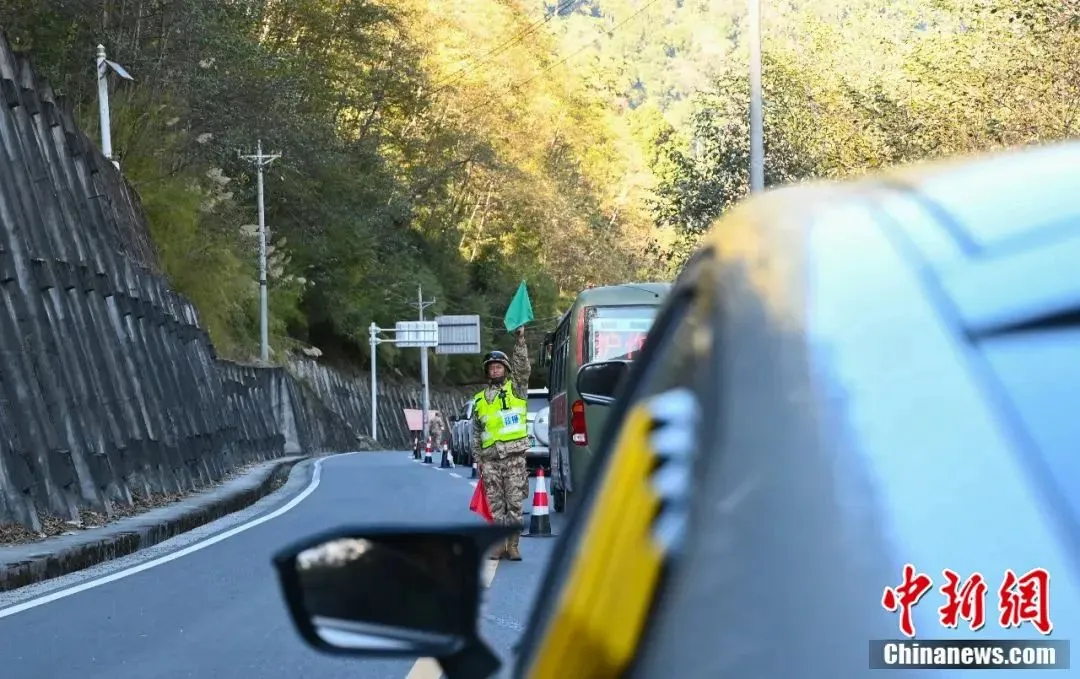 圖為護(hù)路期間,道班工人引導(dǎo)往來車輛。中新社記者 王磊 攝