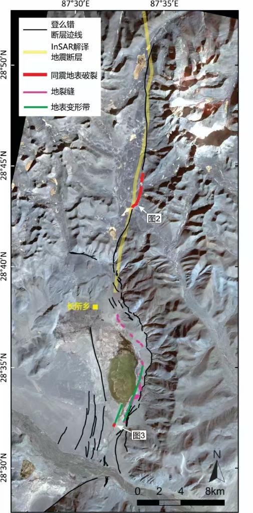 中國地震局地質(zhì)研究所、四川省地震局聯(lián)合調(diào)查團(tuán)隊(duì)1月9日在西藏日喀則定日縣長(zhǎng)所鄉(xiāng)雜村南發(fā)現(xiàn)定日地震同震地表變形帶,同震形變帶延伸超過10千米。