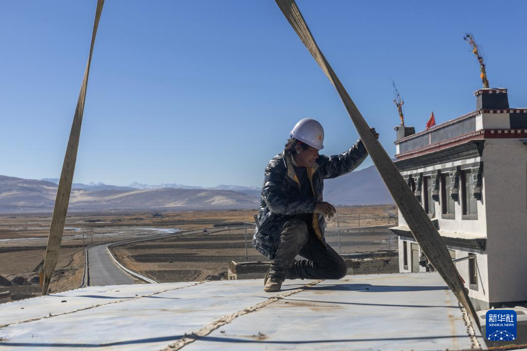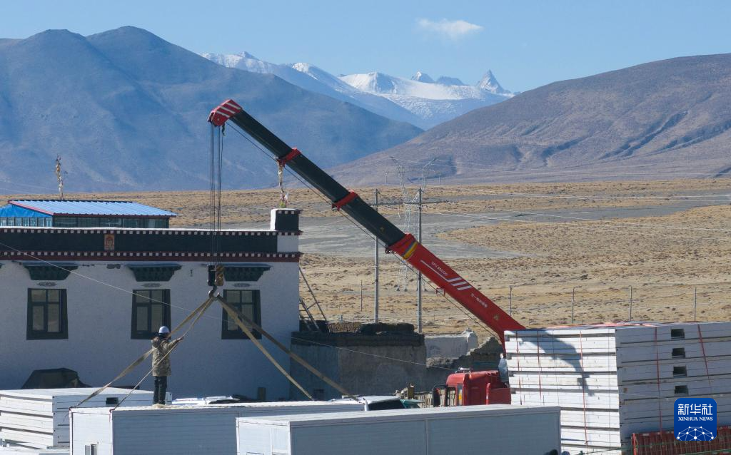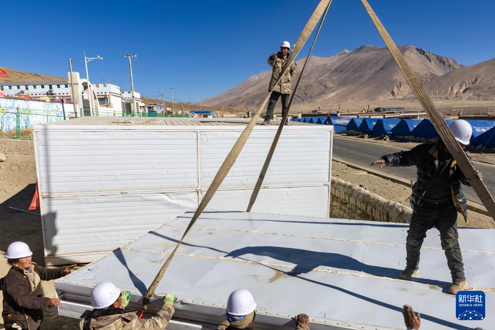 當日,在薩迦縣麻布加鄉(xiāng)白拉村,工程人員與有相應技術的村民一起建設活動板房。據了解,這是薩迦縣地震災區(qū)開建的第一批板房。