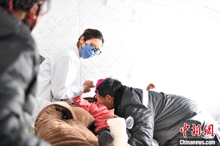 1月10日,西藏定日,醫(yī)護人員帶老人達娃的孫女去復(fù)查。 中新社記者 貢嘎來松 攝