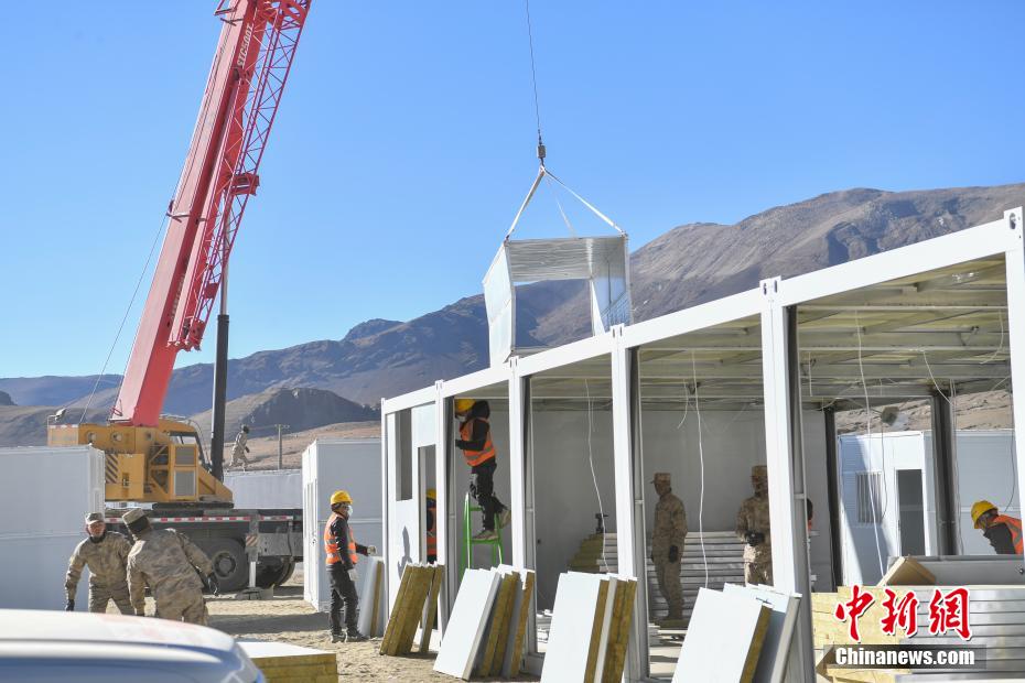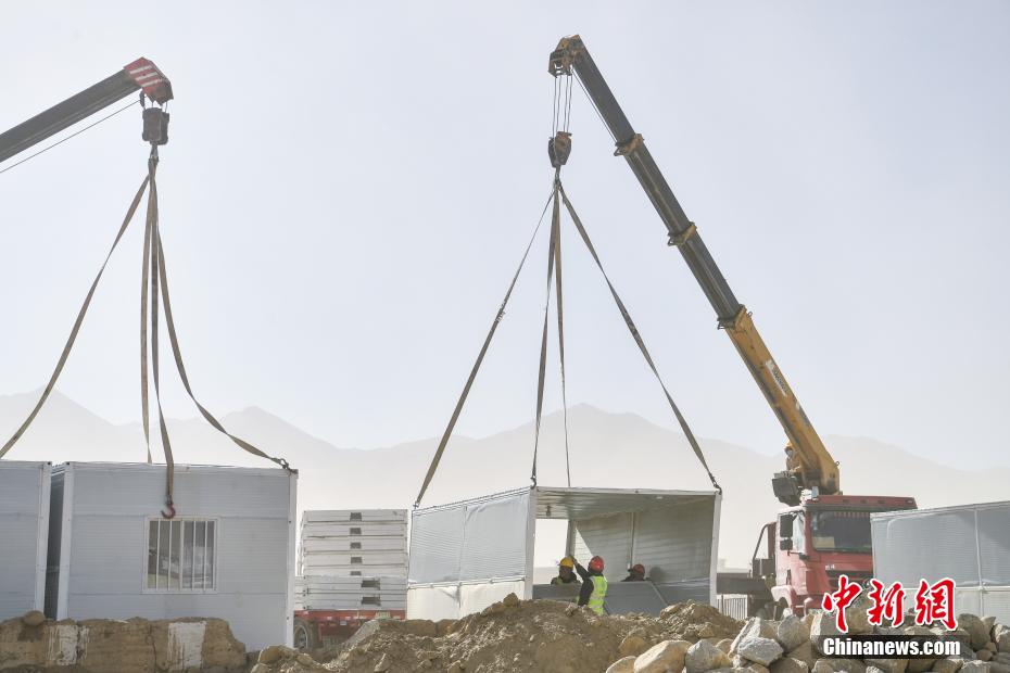 1月7日9時(shí)5分,西藏自治區(qū)日喀則市定日縣發(fā)生6.8級(jí)地震,震源深度10公里。災(zāi)情就是命令,當(dāng)?shù)卣推髽I(yè)迅速行動(dòng),目前災(zāi)區(qū)多個(gè)鄉(xiāng)村都在加緊進(jìn)行保溫板房建設(shè),只為讓受災(zāi)民眾早日擁有“安心巢”。據(jù)了解,每間板房有18平方米,可容納4到5人,板房設(shè)有折疊床、桌子、爐子等,并保障民眾用電需求,讓他們更好地度過(guò)冬天。圖為1月10日,西藏日喀則市定日縣長(zhǎng)所鄉(xiāng)森嘎村保溫板房建設(shè)現(xiàn)場(chǎng)。中新社記者 貢嘎來(lái)松 攝