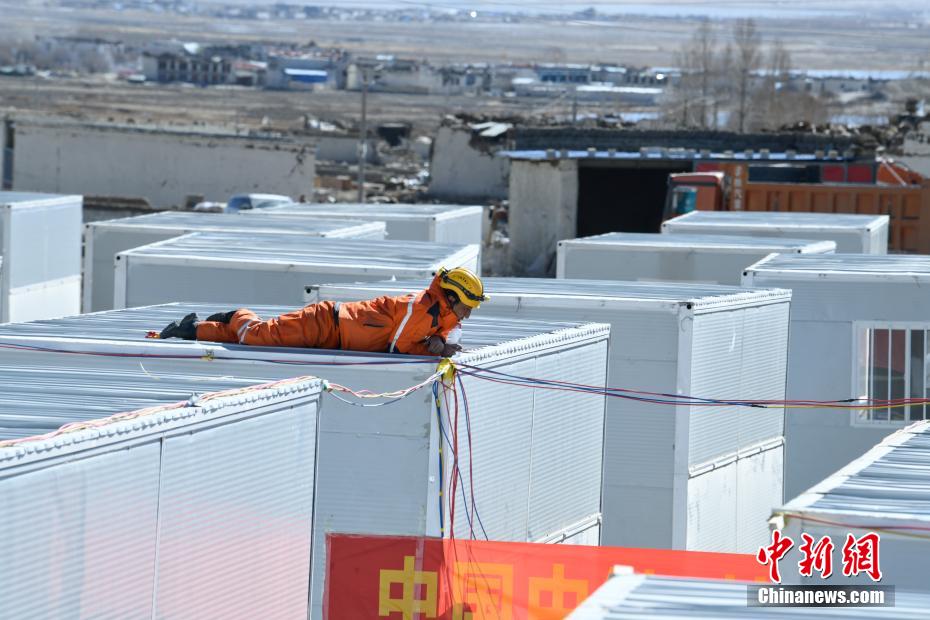 1月7日9時(shí)5分,西藏自治區(qū)日喀則市定日縣發(fā)生6.8級(jí)地震,震源深度10公里。災(zāi)情就是命令,當(dāng)?shù)卣推髽I(yè)迅速行動(dòng),目前災(zāi)區(qū)多個(gè)鄉(xiāng)村都在加緊進(jìn)行保溫板房建設(shè),只為讓受災(zāi)民眾早日擁有“安心巢”。據(jù)了解,每間板房有18平方米,可容納4到5人,板房設(shè)有折疊床、桌子、爐子等,并保障民眾用電需求,讓他們更好地度過(guò)冬天。圖為1月11日,西藏日喀則市定日縣長(zhǎng)所鄉(xiāng)嘎旦村,工人在為板房搭設(shè)電路。中新社記者 貢嘎來(lái)松 攝