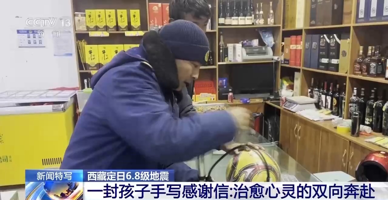 曲洛鄉(xiāng)野江村安置點(diǎn)內(nèi)有近一百名孩子。10日晚,一群小朋友把一個踩扁的易拉罐踢著玩,還拉著忙完的消防員一起切磋“球”技。這個視頻被日喀則市森林消防大隊(duì)的消防員隨手記錄下來并發(fā)在工作群里,一名消防員看到后,當(dāng)晚驅(qū)車到縣城買了一個足球。