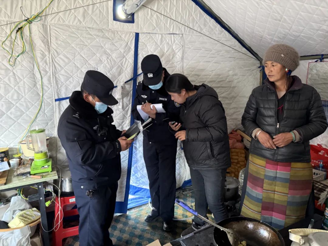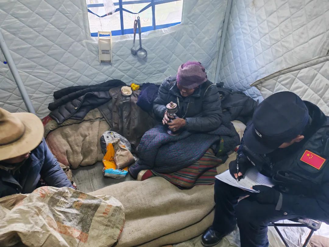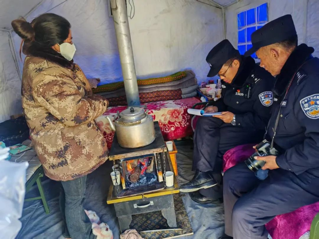 民輔警們穿梭于安置點的帳篷間,每到一處,都與群眾親切交談?!巴砩纤X冷不冷?”“吃飯還習慣嗎?”簡單的話語,飽含著無盡的關切。他們神情專注,認真傾聽群眾的反饋,無論是基本的衣食住行問題,還是特殊的醫(yī)療需求,都詳細記錄在冊。對于行動不便的老人與殘疾人,民輔警們更是格外關注,耐心細致地詢問他們在生活中遇到的種種困難,力求在第一時間給予解。