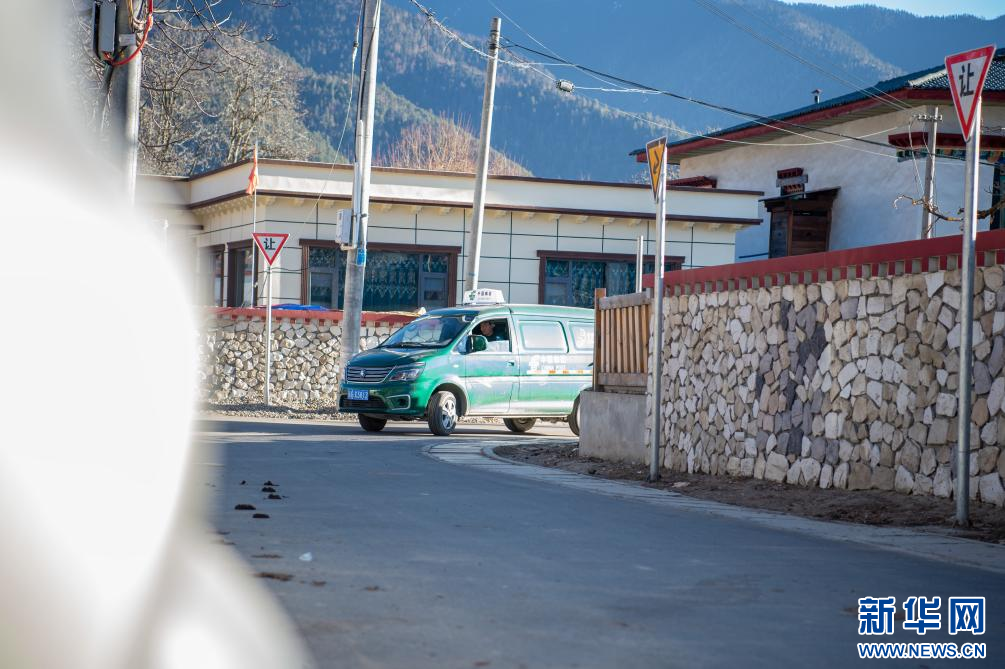 1月19日,西藏林芝市“郵快合作”新配備的郵遞車(chē)穿行在鄉(xiāng)村小巷。新華網(wǎng) 旦增努布 攝