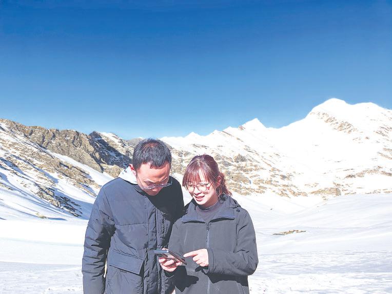 春節(jié)將至,中國移動運維工程師陳湘萍和白瑪?shù)┣谇巴鞑啬乔芯瘎?wù)工作點進(jìn)行量子密訊維護(hù)的路上。正值寒冬臘月,在平均海拔超過4500米的西藏地區(qū),空氣稀薄、冰天雪地、呵氣成冰。他們“全副武裝”,全身包裹得只露出眼睛。一人提著檢測設(shè)備,另一人提著熱水壺,深一腳淺一腳地向工作點走去。