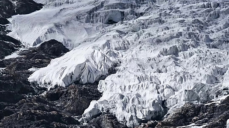 感受完藏歷新年的歡樂氛圍后,便可繼續(xù)前往卡若拉冰川??ㄈ衾ㄊ俏鞑鼐嚯x公路最近的冰川,也是電影《紅河谷》的取景地。盡管已到2月末、3月初,但由于海拔較高,冰川受氣溫回暖的影響較小。在距離卡若拉冰川不遠(yuǎn)處,有一處小眾打卡點——恰央措,近年來受到越來越多人的關(guān)注。恰央措的藍(lán)冰呈深藍(lán)色,冰下布滿密密麻麻的白色網(wǎng)狀紋路,景象十分壯觀,拍照效果極佳。