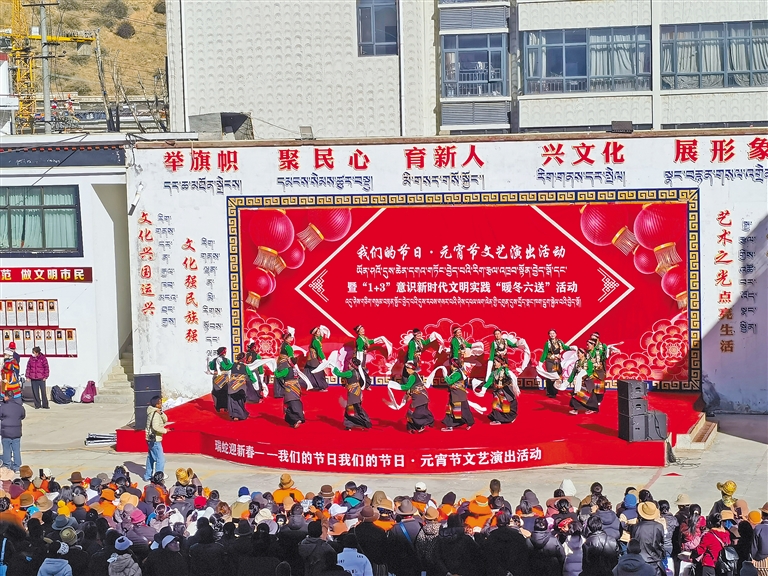 圖為日喀則市“我們的節(jié)日·元宵節(jié)文藝演出活動”現(xiàn)場。記者 馬曉艷 攝