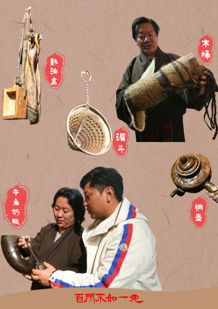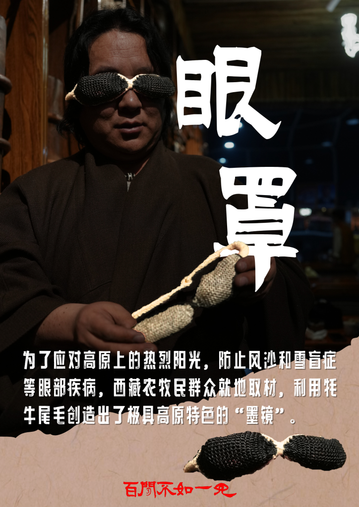 牦牛毛“墨鏡”、牛皮茶包、便攜酥油盒、給牛犢喂奶的牛角奶瓶……