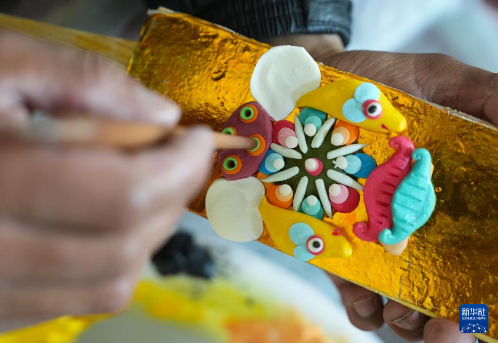 在拉薩市老城區(qū),手工藝人在捏制酥油花(2月25日攝)。新華社記者 晉美多吉 攝