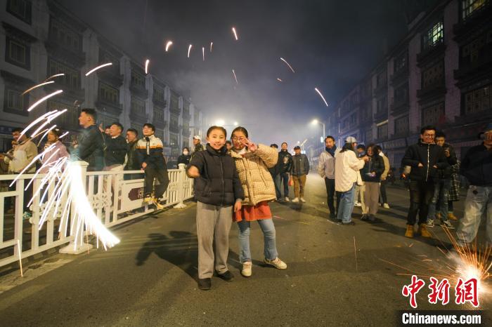 藏歷新年是西藏傳統(tǒng)民俗活動(dòng),也是中國國家級(jí)非物質(zhì)文化遺產(chǎn)。2月27日,西藏迎來一年一度的藏歷新年古突夜(類似春節(jié)的除夕),如今過古突夜,西藏民眾在點(diǎn)燃火把的同時(shí),也會(huì)燃放煙花,古城拉薩煙花璀璨。圖為2月27日晚,拉薩當(dāng)?shù)孛癖娕c游客等在街頭共同慶祝藏歷木蛇新年的到來。中新社記者 江飛波 攝