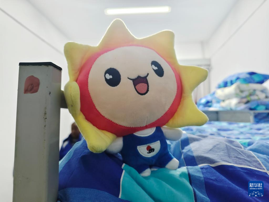 學(xué)生宿舍床鋪上擺放的“太陽娃娃”毛絨玩具。新華社記者 李西銓 攝