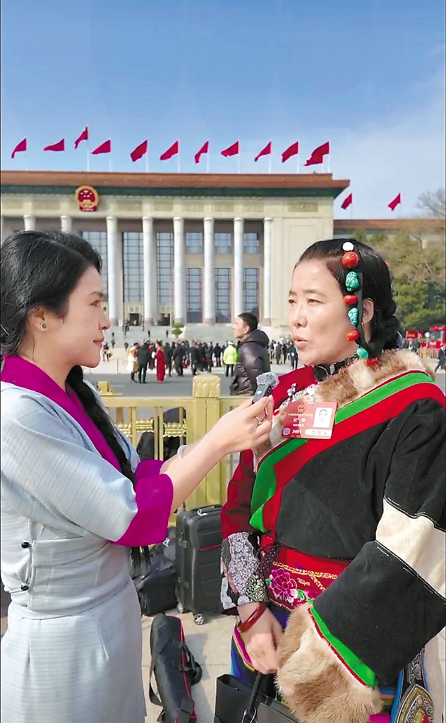 黨的光輝照邊疆,邊疆人民心向黨?!?024年,我們縣迎來兩件大喜事,一是縣人民醫(yī)院新院址投入使用,院區(qū)整潔、漂亮,醫(yī)院技術裝備也更新升級,進一步實現(xiàn)了家門口‘能看病’到‘看好病’的飛躍;二是縣第二中學竣工,現(xiàn)代化的新校舍進一步實現(xiàn)了‘辦好牧民家門口的優(yōu)質學校的目標’。這次全國兩會上,我會把這些好消息分享給其他代表委員,讓他們知道在黨的堅強領導下,西藏確確實實富起來、好起來了。”其德激動地介紹說。