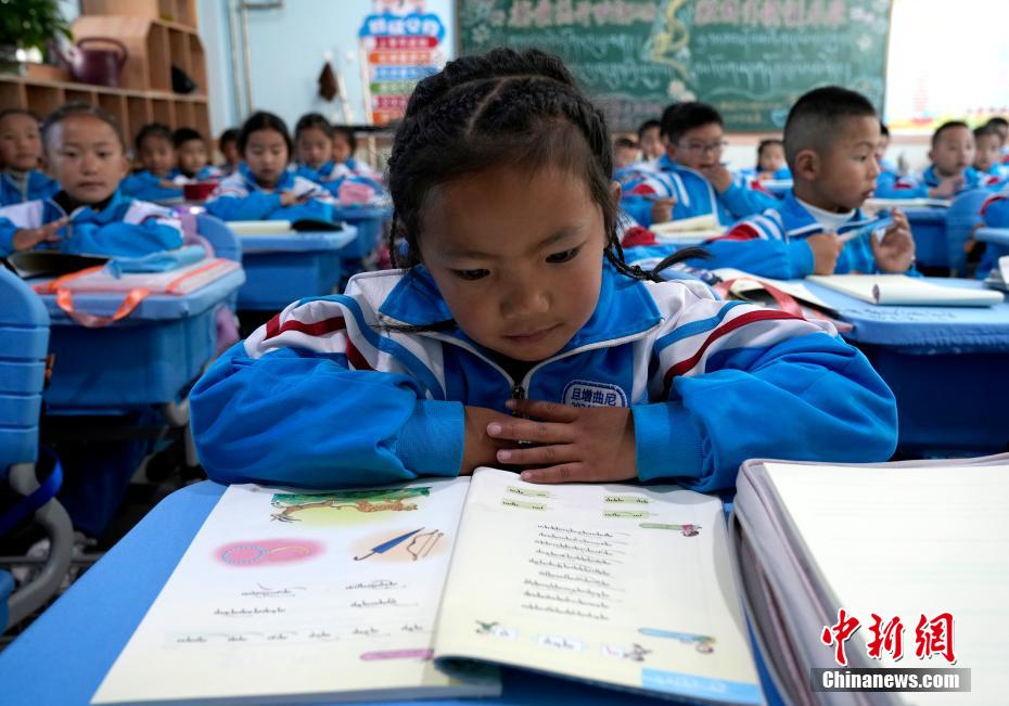 3月10日,拉薩市第一小學(xué)一年級(jí)八班學(xué)生們正在上藏語文課。當(dāng)日,西藏拉薩市春季學(xué)期開學(xué),各項(xiàng)教學(xué)工作有序開展。中新社記者 李林 攝