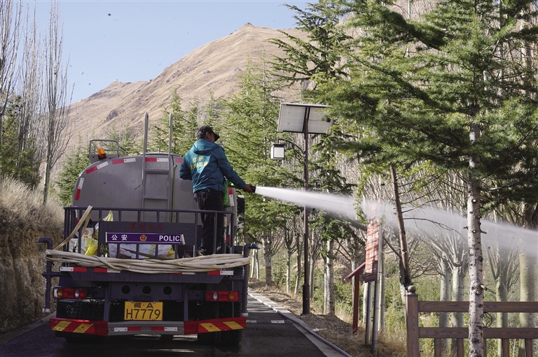 在南山公園,記者看到工人們正忙著給樹澆水。南山公園安保人員扎西次旺告訴記者:“雖然我是負(fù)責(zé)安保工作的,但是我不忙的時(shí)候也會(huì)去給樹澆水,因?yàn)檫@里的每一棵樹、每一株草對(duì)于我們而言都有非常大的意義。通過大家的努力,我相信我的家鄉(xiāng)會(huì)變得越來越綠,生態(tài)環(huán)境也會(huì)越來越好?!?/p>