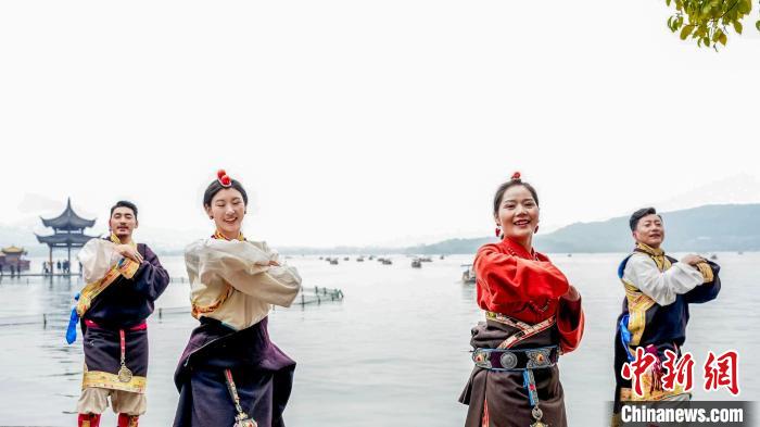 活動(dòng)當(dāng)天,身著彩云紋藏裝的波密兒女踏歌而來,沿著斷橋、雷峰塔等西湖文化地標(biāo),開啟流動(dòng)的藝術(shù)巡演。藏式廣袖輕揚(yáng)間掠過湖光,自發(fā)加入的游客與藏族演員即興共舞,在千年勝景中勾勒出民族交往交流交融的動(dòng)人圖景?;顒?dòng)現(xiàn)場(chǎng),熱情的藏族姑娘、藏族小伙為參與互動(dòng)的游客送上“桃花氣球”和文創(chuàng)禮品,將高原春日的印記留在江南水岸。