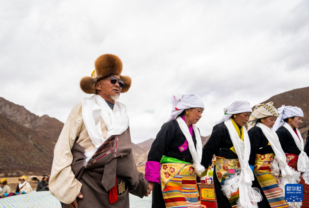 旺慶老人(左七)在春耕大典上唱頌詞(3月16日攝)。新華社記者 晉美多吉 攝