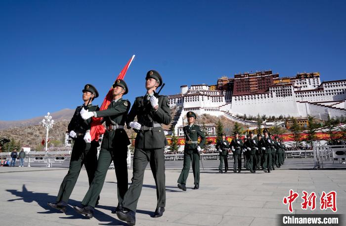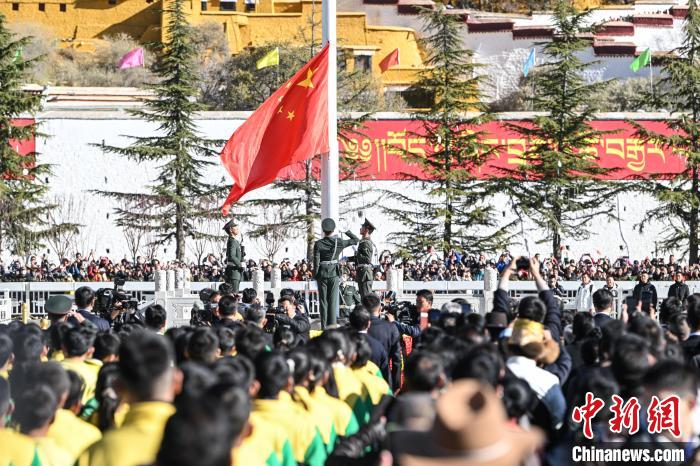 3月28日,“3·28”西藏百萬農(nóng)奴解放66周年“升國旗、唱國歌”儀式在拉薩舉行。貢嘎來松 攝