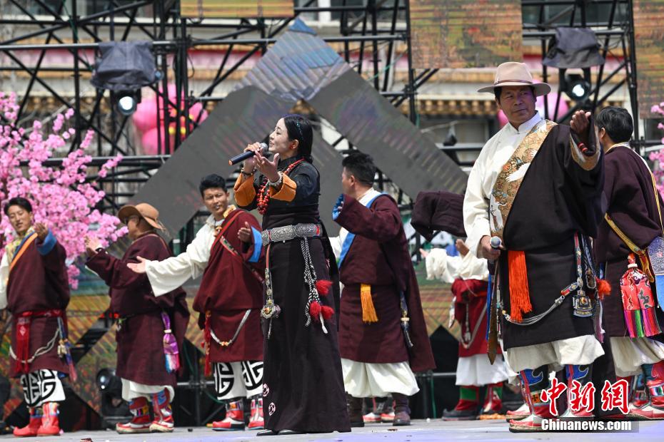 4月1日,西藏自治區(qū)林芝市第二十二屆桃花旅游文化節(jié)波密縣分會場熱鬧開場。本次分會場以“冰川映桃韻波密醉春風”為主題,亮點紛呈。開幕式上,極具特色的西藏原生態(tài)歌舞、非遺藏紙舞蹈,生動演繹出雪域文化的迷人風情;嶺南龍獅與藏族熱巴鼓相遇,剛?cè)岵囗懨褡鍒F結(jié)的和諧樂章;“冰川王子”與“桃花仙子”領(lǐng)舞,各族民眾翩然起舞,現(xiàn)場氣氛熱烈?;顒蝇F(xiàn)場,除了精彩文藝演出,特色美食、民俗文化展示區(qū)也吸引眾多游客駐足。大家一邊品嘗當?shù)孛朗常贿吀惺苊袼孜幕攘?。?jù)悉,桃花節(jié)將持續(xù)至4月中旬,期間波密縣還安排多場專題活動,誠邀各地游客前來,共赴這場春日浪漫之約。圖為開幕式的文藝表演拉歌對唱《國道聲灼》。中新社記者 貢嘎來松 攝