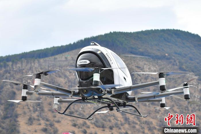 4月5日,西藏林芝第二十二屆桃花旅游文化節(jié)上,億航智能桃花載人無(wú)人機(jī)E-VTOL首次亮相海拔3000米高度,并成功首飛。首飛現(xiàn)場(chǎng),無(wú)人機(jī)緩緩升空,引得市民、游客紛紛駐足仰望,降落之后,大家圍攏過(guò)來(lái),近距離參觀體驗(yàn)并拍照留念。據(jù)悉,億航智能已在國(guó)內(nèi)合肥、杭州等地開展低空文旅項(xiàng)目,在全球19個(gè)國(guó)家,完成65000架次安全飛行。圖為載人無(wú)人機(jī)E-VTOL在西藏林芝上空飛行。貢確 攝