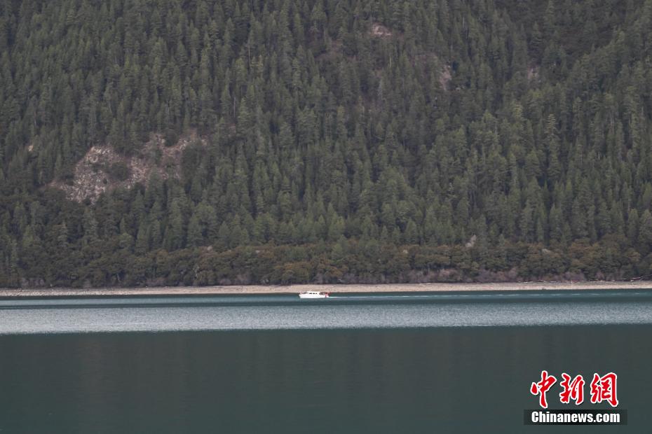 4月6日,西藏林芝工布江達(dá)縣巴松措景區(qū)游人如織。春日里,湛藍(lán)湖水與巍峨雪山相映成趣,游客游玩湖心島或乘船游覽,沉醉在這湖光山色中。圖為巴松措里的游船。中新社記者 貢嘎來松 攝