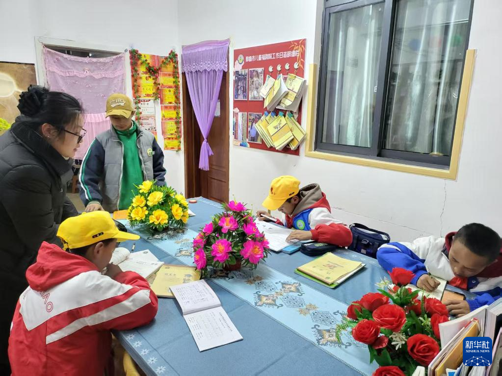 2025年3月17日,周雪在兒童福利院與放學(xué)回去的孩子談心,了解他們在學(xué)校的情況。(受訪者供圖)