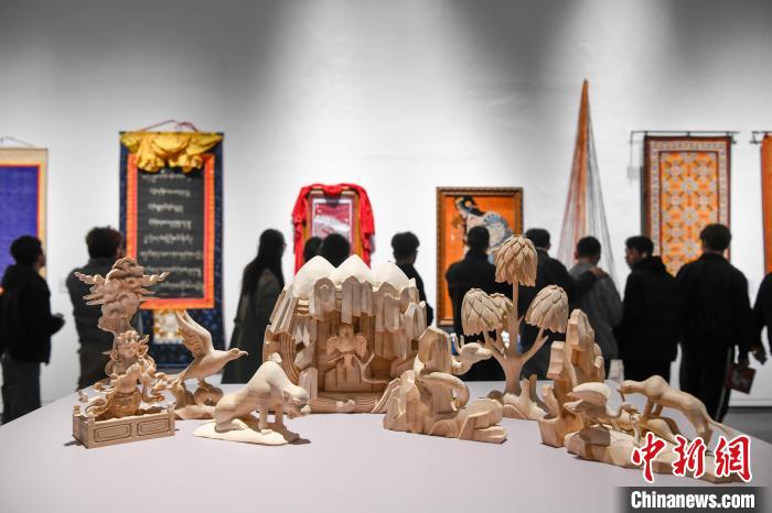 4月9日,“盛世禮贊·西藏工藝美術作品區(qū)內巡展”在拉薩首展。此次展覽精心籌備,從西藏全區(qū)234位創(chuàng)作者送選的468件作品里,精心挑選出75位作者的100件代表作。展覽分為“精雕細琢·各美其美”“古韻丹青·美人之美”“多姿多彩·美美與共”三個板塊,借多種形式,全方位展示西藏自治區(qū)成立60年來傳統(tǒng)工藝美術行業(yè)的發(fā)展成就。圖為展覽現(xiàn)場。中新社記者 貢嘎來松 攝