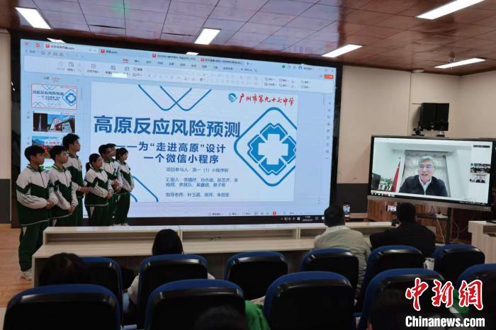 活動期間,廣州97中高一年級小程序班學生介紹了“高原反應風險預測”小程序。羅鳳鳴教授通過視頻連線予以專業(yè)點評,稱贊該小程序對前往高原人群極具實用價值,對學生的科學探索與創(chuàng)新精神表示欽佩,并愿持續(xù)提供指導。