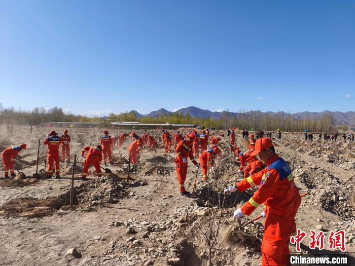 圖為日喀則市森林消防大隊(duì)義務(wù)植樹活動(dòng)現(xiàn)場(chǎng)。洛桑頓珠 攝