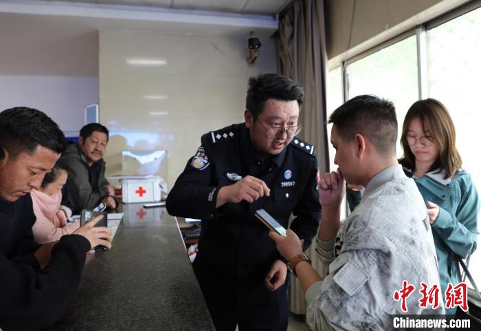 圖為西藏邊檢總站執(zhí)法調(diào)查支隊(duì)民警耐心為群眾解答疑問。沈鵬飛 攝