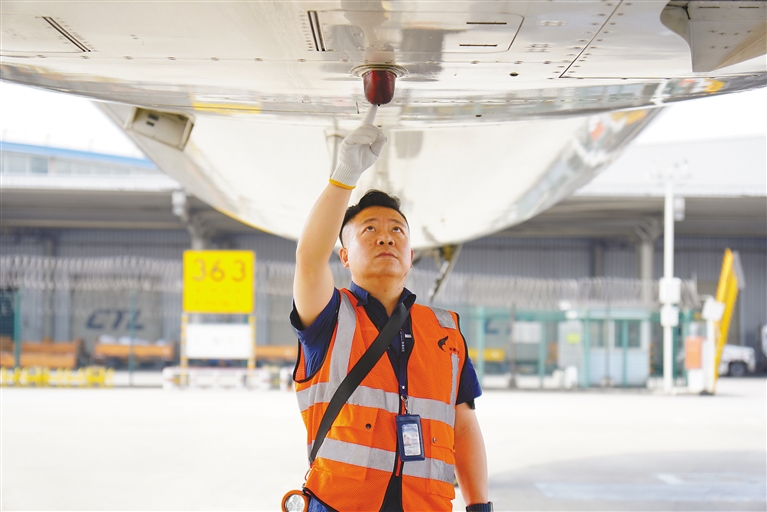 “因為我的家鄉(xiāng)挨著機場,從小就看著飛機起起落落。后來知道有飛機維修這個行業(yè),覺得能親手保障每一架飛機的安全飛行,是件多么有意義的事情,就一頭扎進了這個行業(yè)?!闭劶芭c飛機維修的緣分,何濤眼中閃著光。