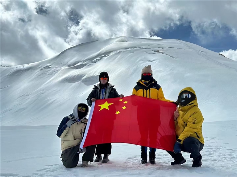 鄒師思告訴記者:“登山過程中,我們團隊展現(xiàn)了高度的專業(yè)性與協(xié)作力。學(xué)院領(lǐng)導(dǎo)提前提供物資與精神支持,專業(yè)教練指導(dǎo)徒步與技術(shù)訓(xùn)練。在海拔5500—6000米段,隊伍統(tǒng)一行軍節(jié)奏,避免體溫流失或體力透支;登頂時,訓(xùn)練突出者率先觸頂,為體力較弱者提供鼓勵與幫助?!彼锌骸皥F隊協(xié)作是登頂?shù)年P(guān)鍵,真正的勇氣源于科學(xué)準備與戰(zhàn)略堅持?!?/p>