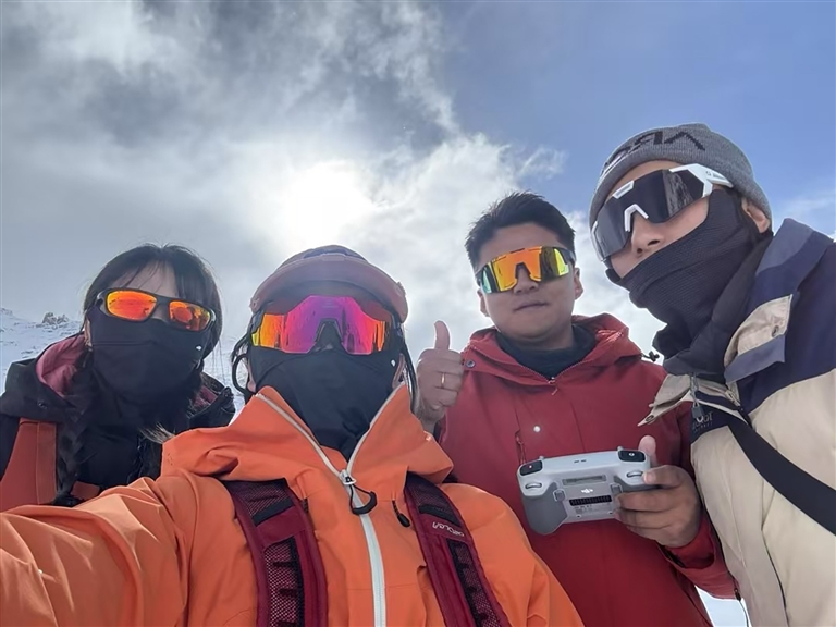 “在特殊的環(huán)境下,拍攝工作充滿了各種挑戰(zhàn)。我要時刻觀察現(xiàn)場情況,及時進行抓拍,有時候為了抓拍精彩的鏡頭,不得不與其他人間隔一定的距離,拍攝結(jié)束還要趕上大家的腳步。我印象最深刻的是過了雪線之后的那段陡坡,我們既要保證攀爬的安全,又要找拍攝角度,還是挺累的?!卑⑼岈斦f。