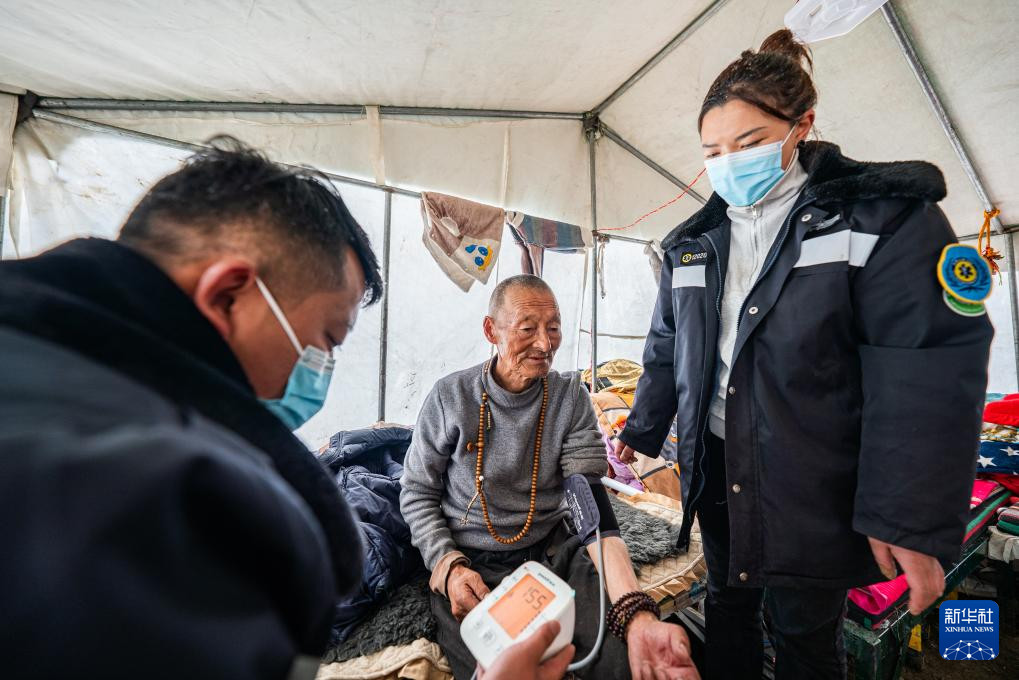 在那曲市索縣西昌鄉(xiāng),衛(wèi)生院醫(yī)務(wù)人員為蟲草采集點的牧民測量血壓(5月18日攝)。新華社記者 丁增尼達 攝