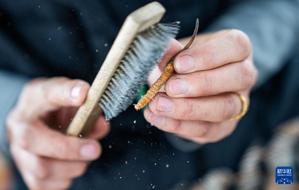 在那曲市索縣西昌鄉(xiāng),牧民白嘎在收納清理好的蟲草(5月18日攝)。新華社記者 丁增尼達 攝