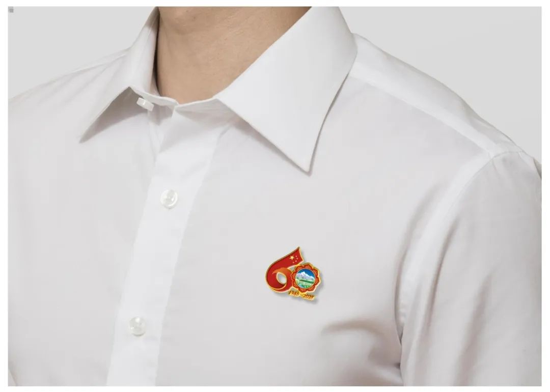 西藏自治區(qū)成立60周年慶?;顒踊諛?biāo)是由五星紅旗延展出的飄帶與格?;ò戥h(huán)構(gòu)成的數(shù)字“60”造型。飄揚(yáng)的五星紅旗象征著繁榮昌盛的祖國母親對西藏的關(guān)懷與呵護(hù),使西藏在砥礪奮進(jìn)的60年中綻放出燦爛的格?;ǘ?。西藏復(fù)興號、現(xiàn)代化新農(nóng)村、風(fēng)力發(fā)電、雪山、藏羚羊等代表了60年來西藏社會主義現(xiàn)代化建設(shè)取得的豐碩成果。“1965-2025”代表西藏自治區(qū)成立60周年。標(biāo)識兼具中華民族精神與西藏歷史底蘊(yùn),整體色彩使用了國旗紅,營造出喜慶、熱烈、祥和的氛圍。