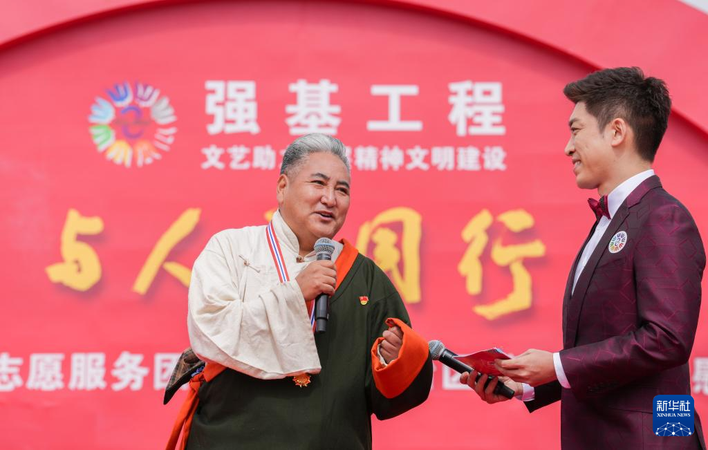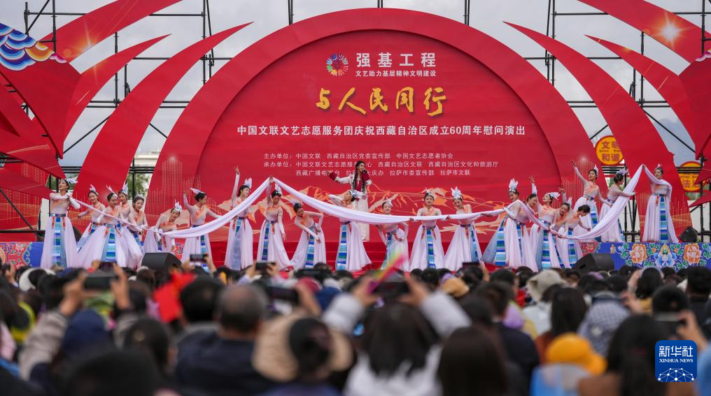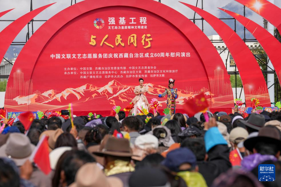 5月25日,由中國(guó)文聯(lián)、西藏自治區(qū)黨委宣傳部、中國(guó)文藝志愿者協(xié)會(huì)主辦的“與人民同行”中國(guó)文聯(lián)文藝志愿服務(wù)團(tuán)慶祝西藏自治區(qū)成立60周年慰問演出在位于拉薩的西藏會(huì)展中心廣場(chǎng)舉行。
