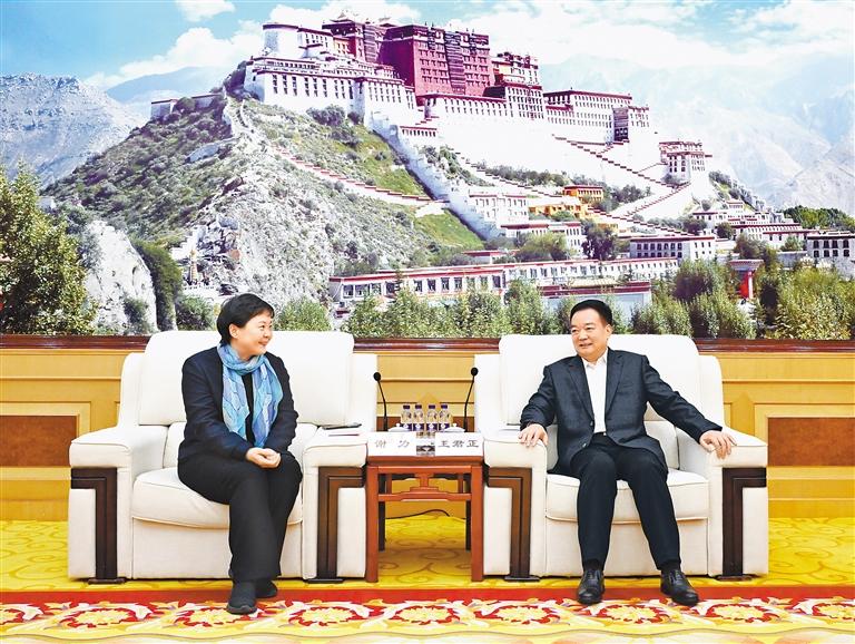 近日,自治區(qū)黨委書(shū)記王君正在拉薩與中國(guó)文聯(lián)黨組成員、書(shū)記處書(shū)記謝力率隊(duì)的中國(guó)文聯(lián)文藝志愿服務(wù)團(tuán)藝術(shù)家代表座談。