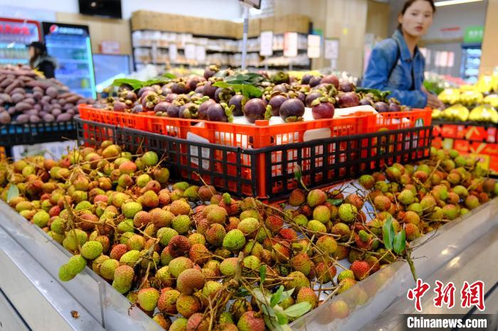 5月27日,西藏拉薩一連鎖超市銷(xiāo)售來(lái)自海南的“妃子笑”荔枝。中新社記者 江飛波 攝