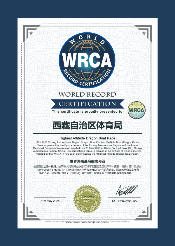 經(jīng)世界紀(jì)錄認(rèn)證機(jī)構(gòu)(WRCA)認(rèn)證為