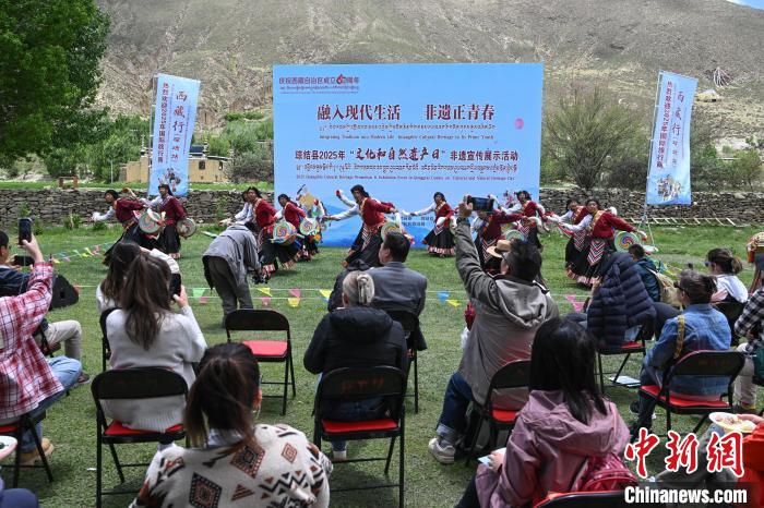 圖為考察在觀看國(guó)家級(jí)非遺久河卓舞。貢嘎來(lái)松 攝