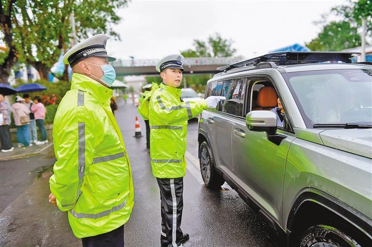 圖為6月7日,交警在拉薩中學(xué)考點門口為考生保駕護航。索朗旺久 攝