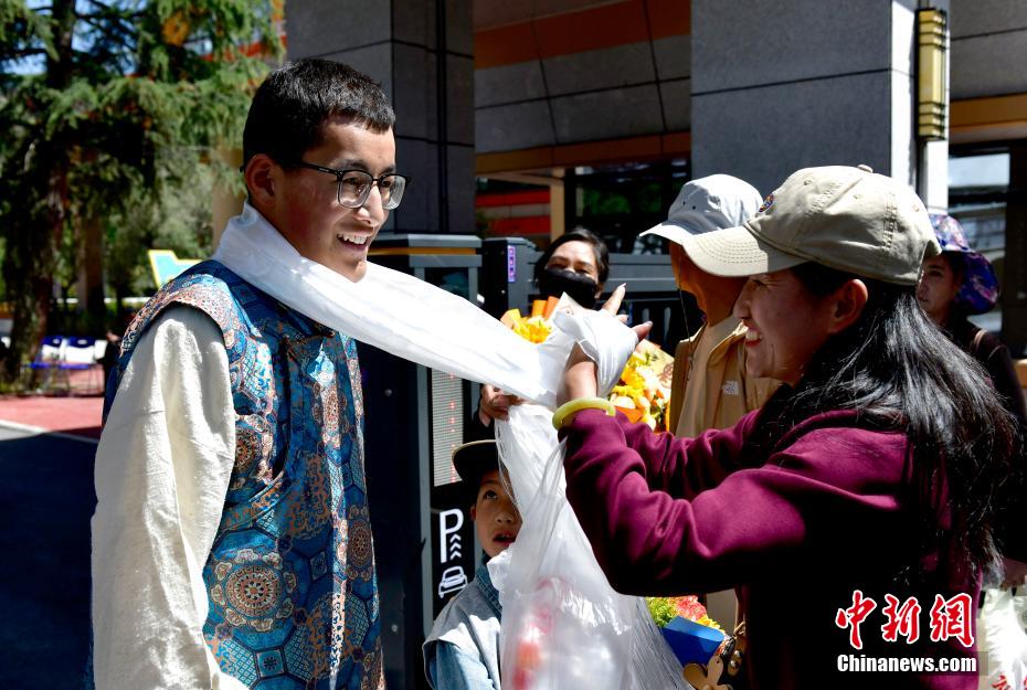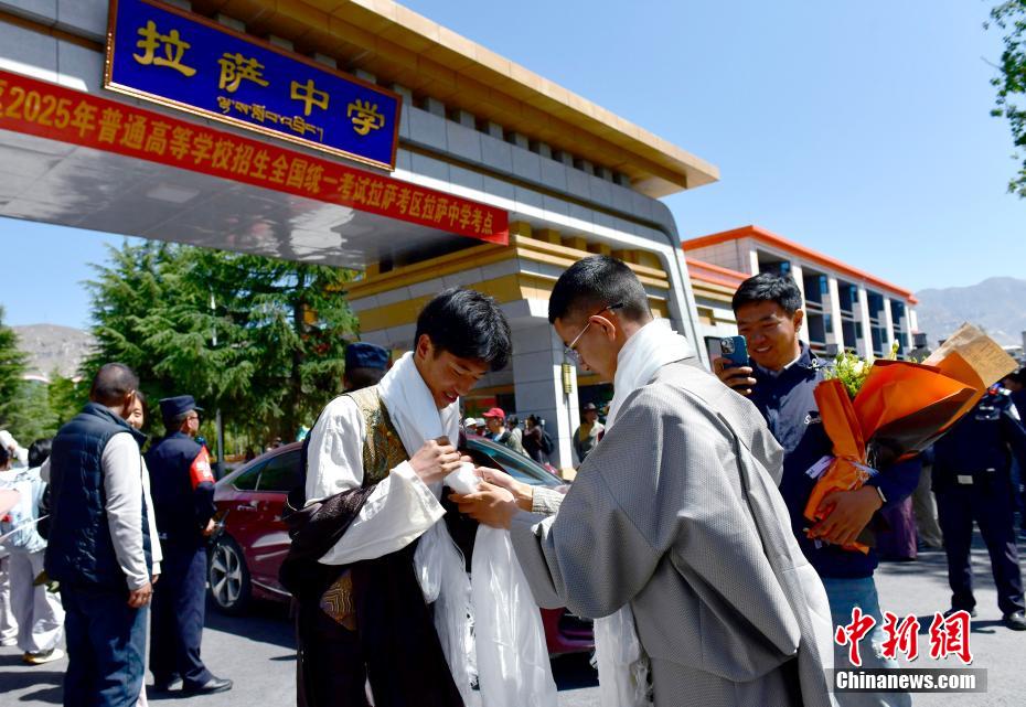 6月9日,西藏拉薩江蘇實(shí)驗(yàn)中學(xué)考點(diǎn)外親友為考生送上哈達(dá)。當(dāng)日,西藏自治區(qū)2025年普通高考完成所有科目考試,2025年西藏高考落下帷幕。中新社記者 貢嘎來(lái)松 攝